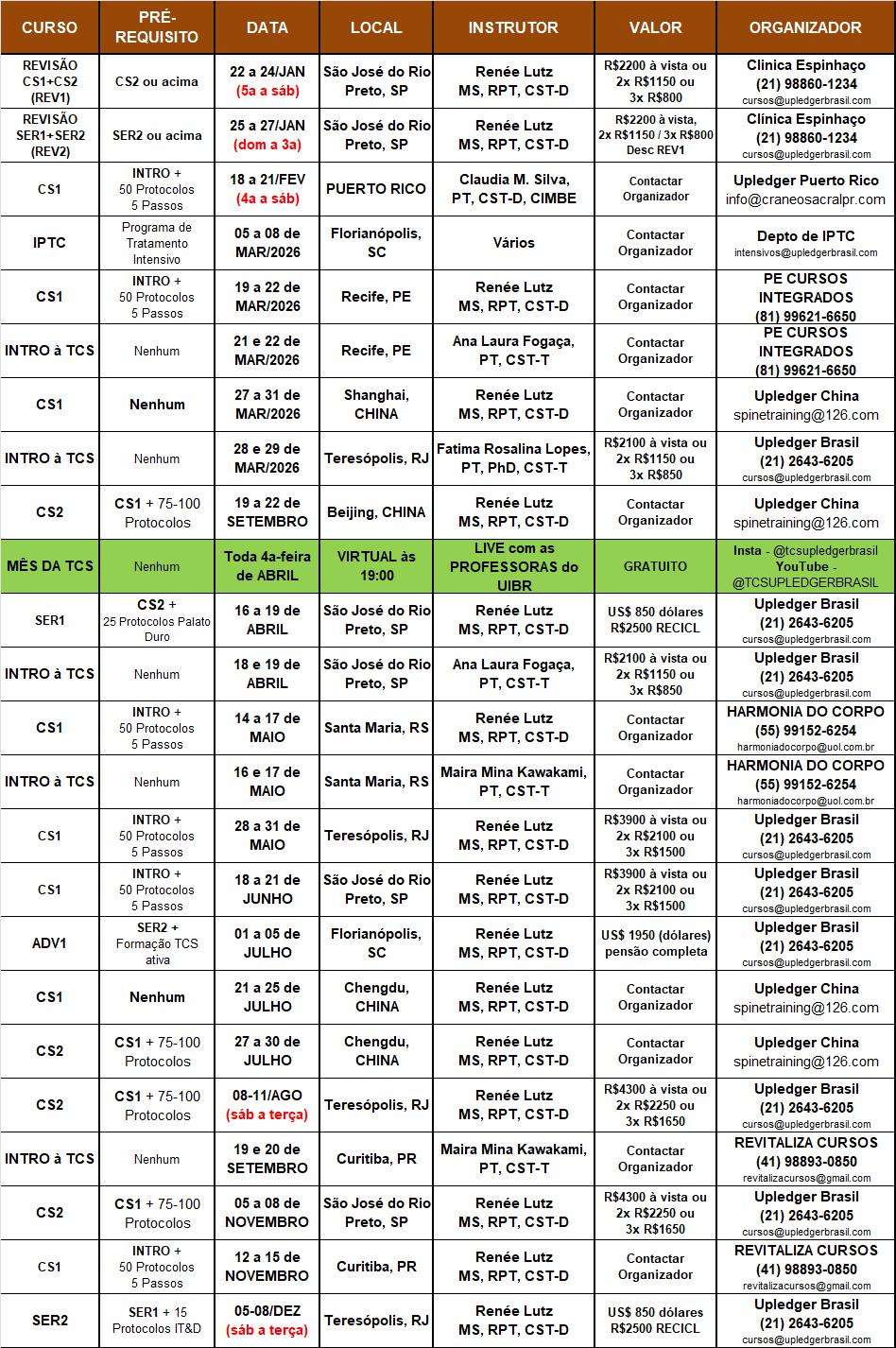 Cursos Upledger Brasil 2026