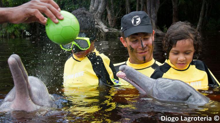 No Brasil esta rara atividade vem crescendo e sendo reconhecida pela mídia como potente recurso Terapêutico, Educativo e Integrativo para seres humanos, além de uma essencial ferramenta de preservação dos botos e seu habitat. O trabalho da Bototerapia, como esta abordagem é chamada no Brasil, foi desenvolvido pelo fisioterapeuta especialista em Rolfing, Igor Simões Andrade. A Bototerapia interage, ludicamente, com os botos, utilizando brincadeiras desenvolvidas e adaptadas, permitindo uma interação de baixo impacto e criando novas possibilidades de comunicação, numa troca criativa e cativante.