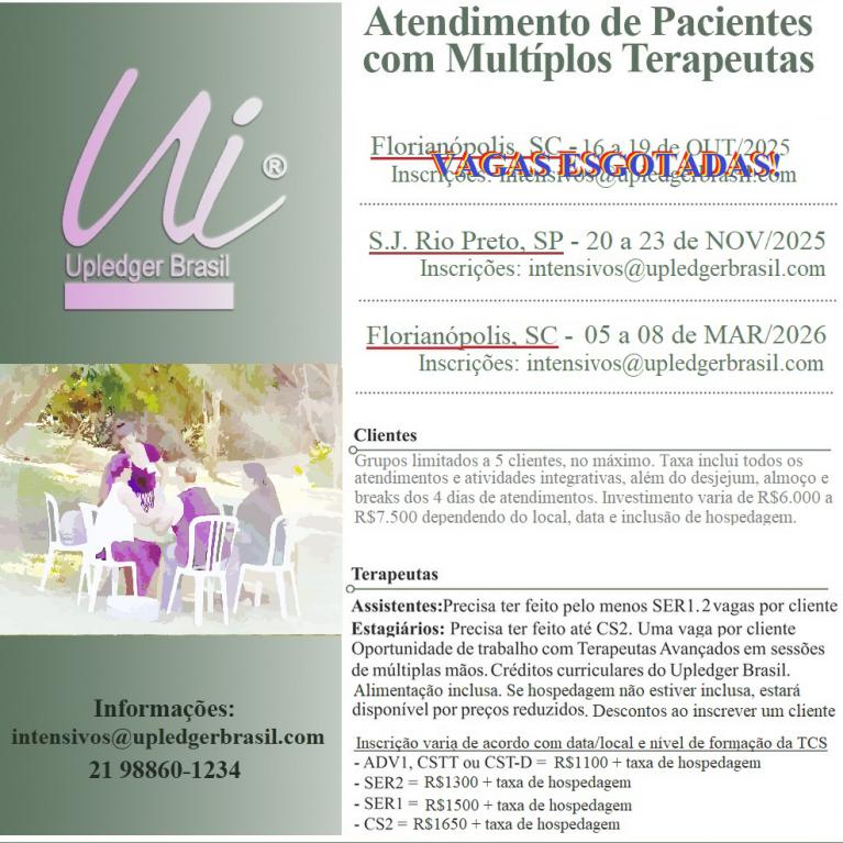 VENHA PARTICIPAR! Info pelo intensivos@upledgerbrasil.com.