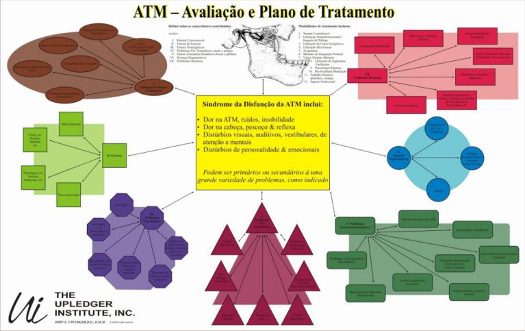 Esse poster, em material de banner, mostra todas as possíveis causas das Disfunções da Articulação Temporo-Mandibular, além de listar possíveis intervenções. É um poster de fácil visualização, com grande efeito explicativo e educacional.