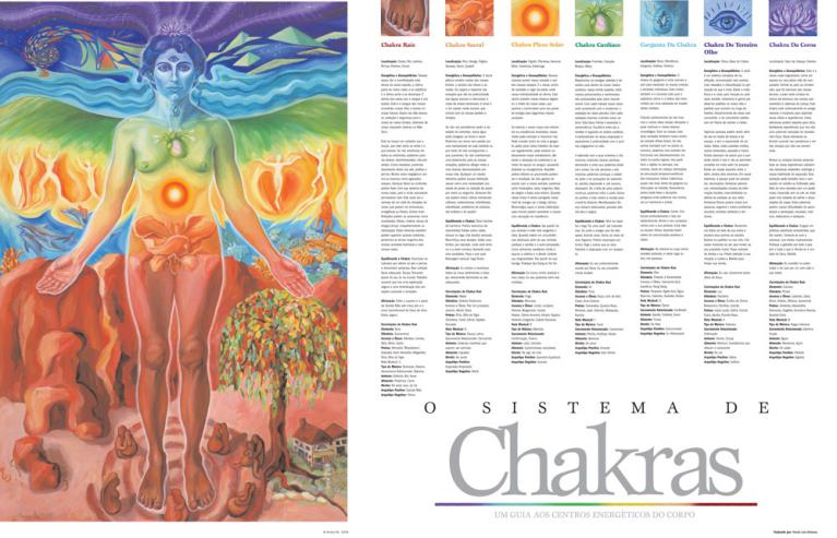 Este poster de Amina Re, além de uma arte espetacular, dá as características típicas de cada um dos sete chakras, incluindo a localização anatômica, os sintomas quando em desequilíbrio, o que fazer para equilibrá-los e as suas correlações específicas com os elementos básicos, glândulas corporais, alimentos, arquétipos e outros.